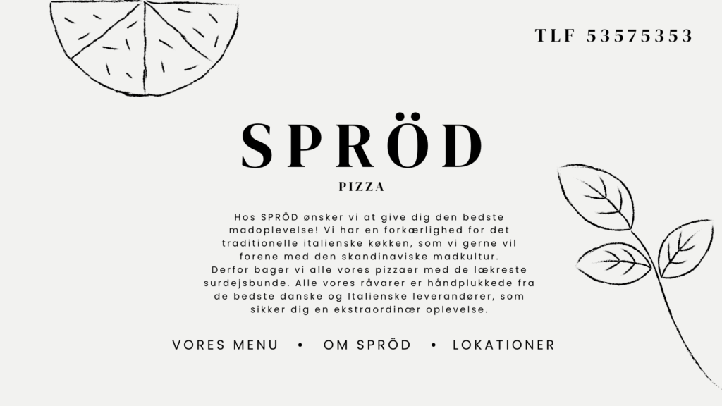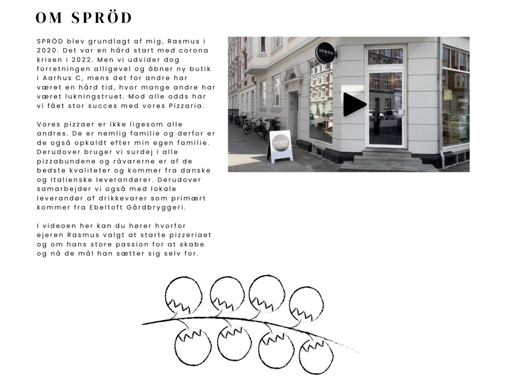 Jeg har i en individuel eksamensopgave arbejdet med Spröd, hvor jeg har haft fokus på at forbinde det visuelle udtryk og stemningen hos restauranten Spröd med deres digitale løsning. Jeg har også udforsket mulighederne for at tiltrække en ny målgruppe og har arbejdet på at tilpasse restaurantens online platform til den nye målgruppe.